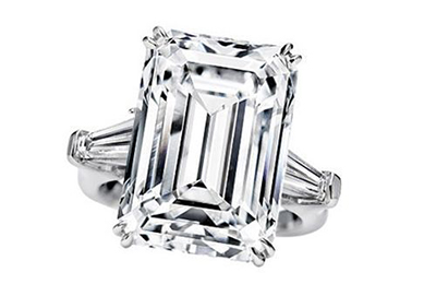 著名的祖母绿型切工钻戒,衬以长锥型边钻,搭配独特的分叉式镶工法,以最少的纯铂金将钻石固定于底座之上,更突显主钻的闪耀与光芒。