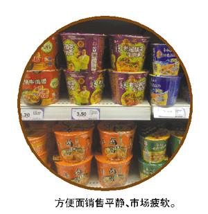 记者了解得知,方便面市场仍较疲软,有关数据显示,2013年,方便面市场销售额较2012年同期仅增长2.6%,销售量则较2012年同期下降1.3%。2014年上半年方便面市场销售额下降1.9%,销售量较去年同期下降5.9%。
