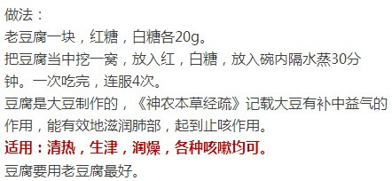 梨1个,蜂蜜50克。先把梨挖去核,将蜂蜜填入,加热蒸熟。每日早晚各吃1个,连吃数日。