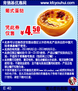 肯德基优惠券(当季优惠券):葡式蛋挞 优惠价4.5元