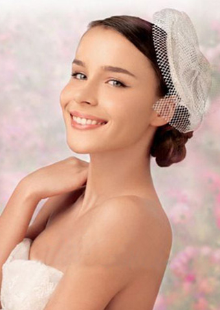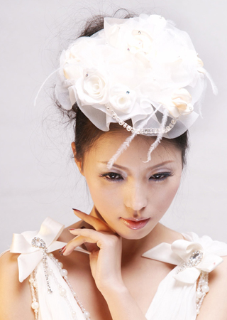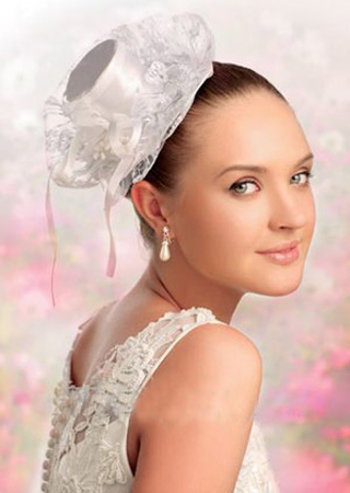 用蕾丝与丝绢制成的帽形头饰充满着顽皮俏丽的姿态,也是天性活泼开朗的新娘彰显个性的专属品。