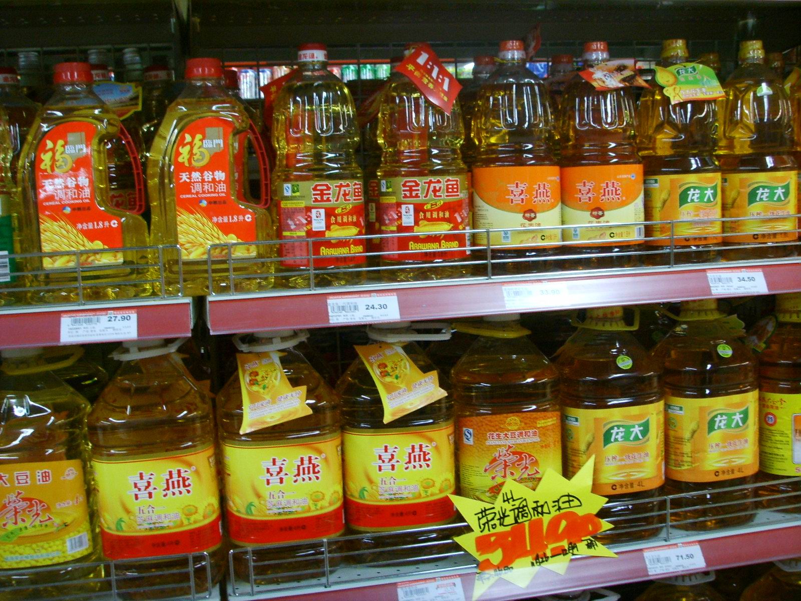 记者在家乐福上海莘庄店等超市看到,金龙鱼食用油终端销售价还未开始涨价,部分产品仍有促销活动,5升装食用调和油标价63.9元,5升装大豆油售价57.3元,5升装玉米油售价79.9并赠送900毫升小包装。业内人士表示,由于从生产企业到经销渠道、批发商以及终端卖场的价格调整有一个周期,预计在一至两周时间后将传导至消费市场终端。