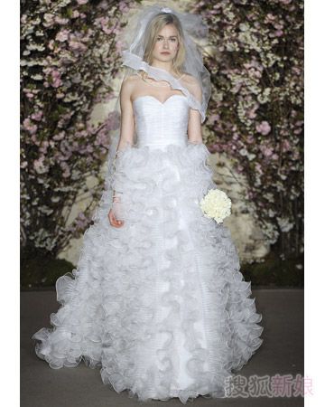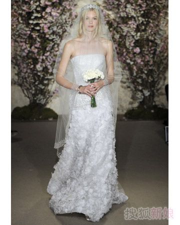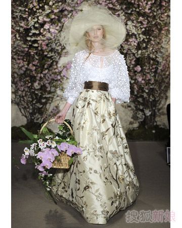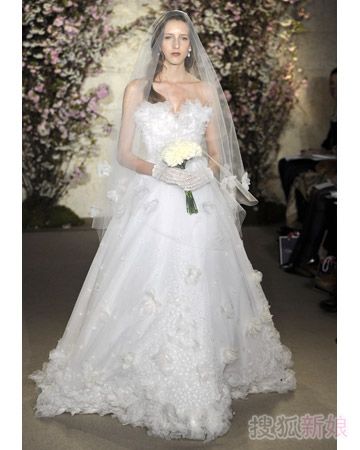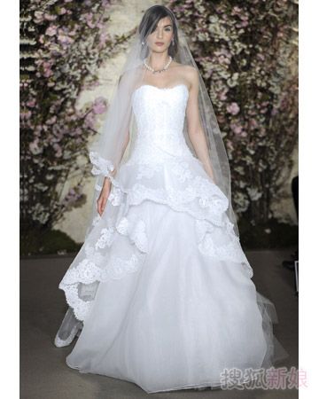 如果说2011年最值得一看的婚纱礼服,我会选择这个品牌——奥斯卡·德拉伦塔(Oscar De La Renta),祖海穆拉的华丽,Elie Saab的轻盈飘逸,都无法替代奥斯卡这一袭浪漫复古的情调,让人看了无数遍后还是想再看一看。