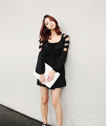 对于简约范儿的MM们来说这款连衣裙就很贴心,插肩袖的设计没有肩宽限制,,背后有拉链开襟穿起来更加舒服,下身随意搭配一件打底裤穿就很nice!