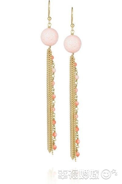 流苏耳坠摇曳在伴娘的耳际,倍添风情,而温润内敛的珍珠与黄金的材质又不会抢了新娘的风头。