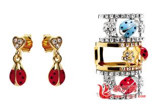 ●情意组合幸运坠 925银镀k金、施华洛世奇水晶,珐琅工艺,爱情的守护者。