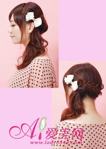 然后就是配上自己喜欢的发饰啦,淡淡的颜色比较清新哦,最后一步就是喷上定型产品了,让迷人的韩式扎发造型持久。