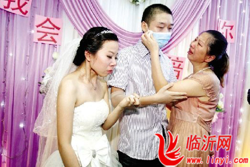 母亲来了,穿着自己最漂亮的裙子。母亲笑着来的,但看到女儿,还是忍不住抱头痛哭,“怎么也没想到过自己女儿的婚礼,会在病房举行。”