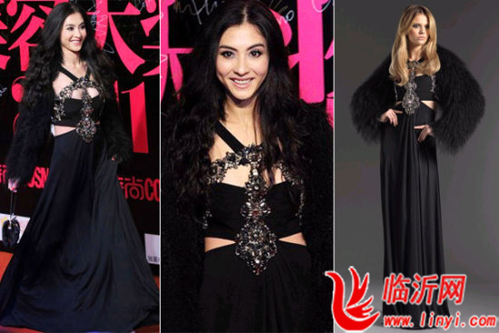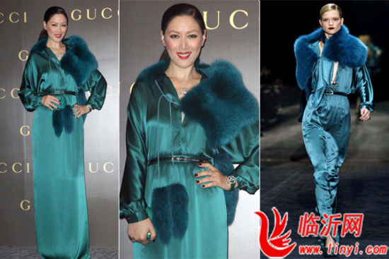琦琦搭配GUCCI 2011秋冬礼服附加了皮草披肩的装饰