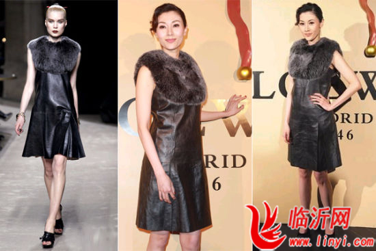 本季的皮草装饰,不需要往年的大面积堆积,小皮草的混搭出位也一样有型,李嘉欣潮搭LOEWE 201秋冬皮草小礼裙,加入未来金属感的银 灰色非但不显老气,反而散发层次感,肩膀的皮草刚好保暖又时髦。