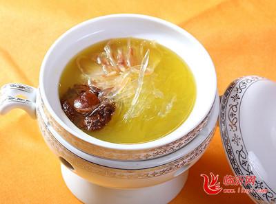 7. 炒锅置中火,舀入高级清汤500毫升,加入精盐,烧沸后,撇去浮沫,放入味精,把沸汤徐徐倒入碗内(燕窝用手勺背抵住),淋上熟鸡油即成。