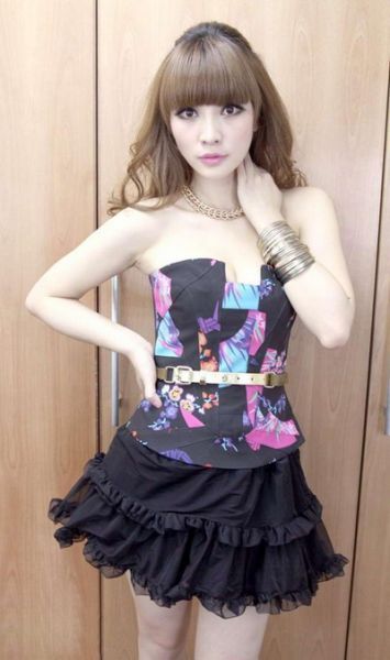 绚丽的印花抹胸上衣,金色腰带增添几分个性时尚,黑色蓬蓬裙让柳岩展现性感同时不失几分甜美气息。