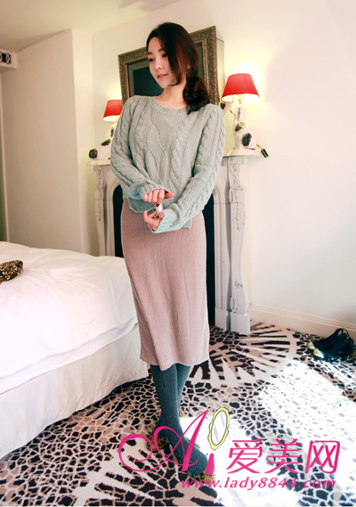 短款的套头毛衣非常有型,搭配上毛织长裙和豹纹平底鞋,减龄不失稳重。
