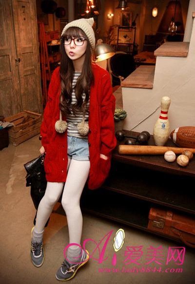 宽松的毛衣外套,让你穿出慵懒的气质,可爱的毛线帽和毛衣相呼应,充满童趣。