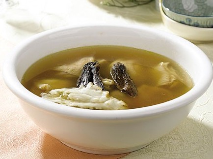 2、蘑菇洗净切两瓣,先炖猪肚,加精盐少许,待八成熟,再入蘑菇煮熟即成。