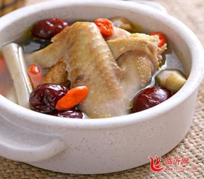 材料:乌鸡1只、板栗200克、红枣15颗、枸杞适量、姜1小块、盐适量