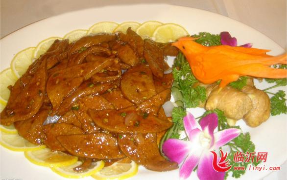 ③锅内留适量油,倒入肝片,再加糖、葱、香油翻炒片刻即可。