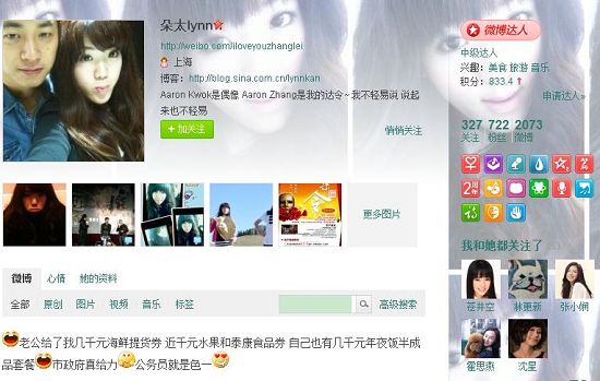 除了“优秀给力”的公务员老公,“朵太lynn”也会“拼爹”。2010年11月10日,她发微博:“爸爸打电话给我,说自己这几天一直参加市政会议,兴奋地告诉我,刚荣升某区工商委的副主任,从商的人一下从政……”另外还有老爹打电话给她,“聊他最近收购了家西餐咖啡厅,已经装修起来了,资金数百万,绝对大工程啊……”