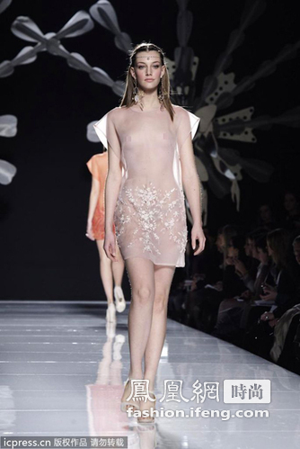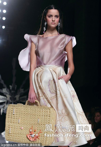 罗马2012春夏高级时装周在近日拉开帷幕,Gattinoni Maison专场秀中,超模身着薄纱刺绣裙,颇有异域风情,民族风的配饰和装扮巧妙结合现代服饰设计,宛如夏娃般清纯脱俗。