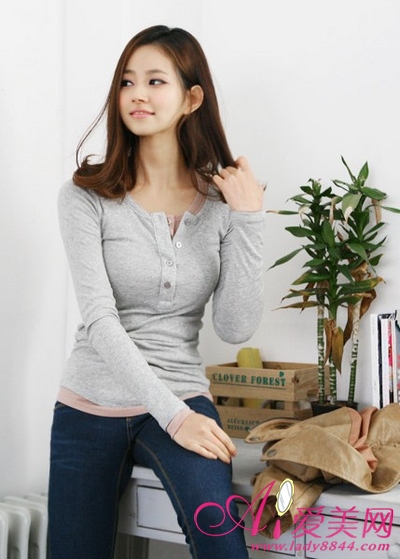 灰色针织打底衫,简单大方,轻松穿出休闲味,春装搭配清爽迷人。