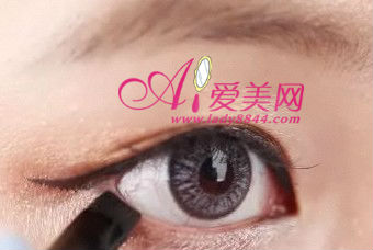 然后轻闭眼睛在睫毛外也紧贴着画一条眼线。