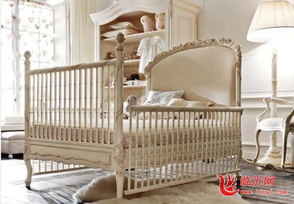 【3、床】婴儿的小床应该有护栏,以防婴儿摔出去。护栏的高度如果低于婴儿身长的2/3时,就要注意防止他站立时跌出。尽量选择圆柱形的栅栏,两个栅栏之间的距离不可超过6厘米,以防止宝宝把头从中间伸出来。