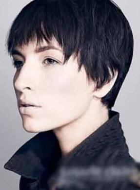 推荐理由:短发要做出瘦脸的效果真的不容易,如果真的做到了瘦脸,女性的柔美感似乎又丧失了。那么就试试“置之死地而后生”,既然没有了柔美感,就改走中性路线吧。例如这款短发,利用贴脸的短发让脸蛋两侧的肉肉与头发融为一体,脸蛋马上小了一圈,干脆爽直的短发还烘托出了帅气的气质。