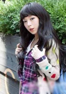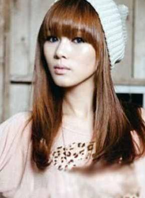推荐理由:齐刘海风貌似在这个季节又卷土重来了,不管长发短发,直发卷发,MM们都喜欢搭上一个稚嫩的齐刘海,不仅掩龄,还能瘦脸。这款发型聪明地利用了分层的发段,先利用齐刘海遮住了额头,脸看上去就小了一半,分层的发段将人的视觉拉到头发上,脸自然就变小了。