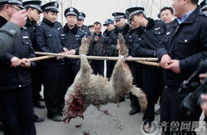 警察加上闻讯赶来的村民,差不多有600多人组成的的搜捕队伍一直追着这只狼。滕州市公安局发言人介绍说,“在发现灰狼后,搜寻民警果断向该狼射击,灰狼中枪后向北逃窜。搜寻民警紧追不舍,追击20余公里,穿越四条河流,终于在八一煤矿一废弃院内将该狼围住。走投无路的灰狼转身向民警扑来,民警果断将其开枪击毙。”