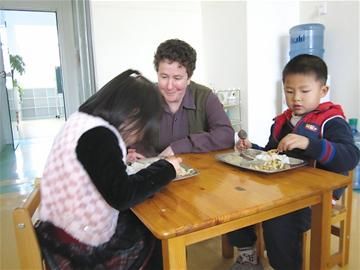 用小勺把上百粒绿豆从一只碗舀到另一只碗中,这看似简单的动作,就是3岁的熙熙上午两个小时的“作业”。昨日上午,当记者走进位于崂山区建飞花园的常春藤幼儿园时,发现教室里的七八个孩子正跟熙熙一样,自顾自地做着倒水、擦桌子、舀豆子、系扣子这些最家常的“工作”。“这些看似简单的日常行为,其实是我们幼儿园孩子的每日课程之一,这种观念和教育模式都是我们的园长从国外带过来的。”幼儿园的老师告诉记者,无论是整个教室的设计、教具的使用、课程的安排,都是孩子们喜欢的“洋妈妈”从美国引进的。在老师的带领下,记者见到了刚刚和家长交流完毕的“洋园长”Beth——40多个孩子喜欢的“洋妈妈”。