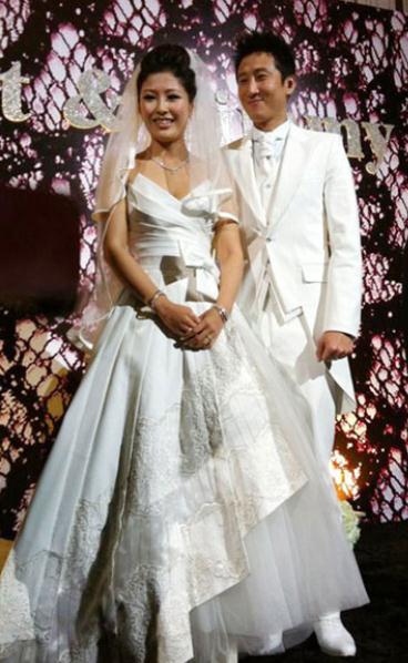 洪天明是洪金宝的长子,大学毕业后从美国回到香港,加入娱乐圈,现在是无线的艺员,除了主持娱乐节目之外,更时常在热播的电视剧里见到他的身影。图为一对新人亮相现场。