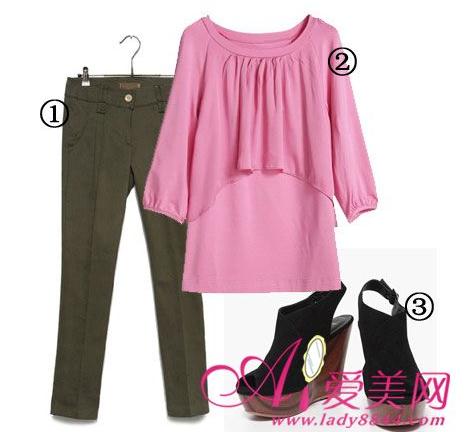 搭配Tips:腿较粗的矮个子MM不妨试试修身但不是紧身的7分裤,搭配假两件的上装,选择的上装可以是不规则不对称下摆的T恤或者是雪纺衫,不要忽略了厚底鞋。