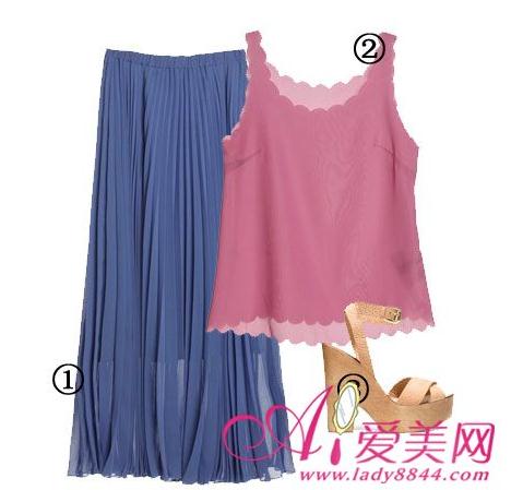 百褶长裙 + 背心上衣 + 高跟鞋
