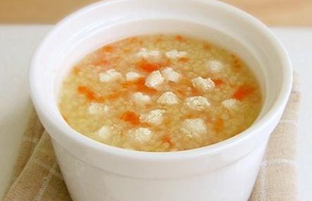 小贴士:豆腐中富含优质植物蛋白、钙质,鸡肉中富含优质动物蛋白,这两种食物结合在一起,促进宝贝长个子作用相得益彰。