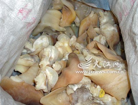 该知情者称,4月1日早上,赣县工商局梅林工商分局执法人员巡查到光彩农贸市场时,发现一名男子用塑料箱装着的猪耳朵每斤只要12元,远低于市场价格。于是,工商人员将摊贩杨某带回局里调查。而就在前不久,局里曾接到一名谢姓男子的投诉,称购买的猪耳朵吃起来口味不对。工商人员马上与投诉者谢先生联系,谢先生赶到局里,一眼就认出了“贱卖”猪耳朵的杨某。