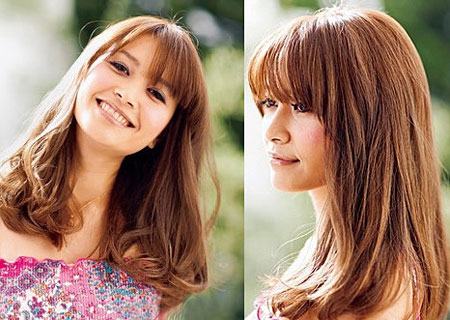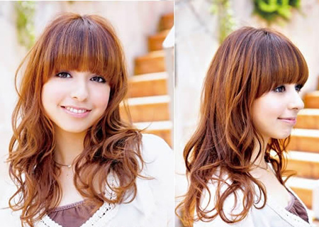 轻盈灵动的卷发,让还是女孩子的你增添了不少女人味。厚重的刘海加入了挑染,又让成熟的你带点甜美可爱的感觉。圆形的造型修剪也有大眼的效果。