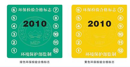 环保检验合格标志分绿色和黄色两种,简称绿标和黄标。二者均表示车辆排污达标,但绿标车排污较低,黄标车排污较高。按照规定,机动车经过环保检验达到排放标准的,发绿色环保检验标志;达不到排放标准但不属于强制淘汰的,核发黄色环保检验标志;如果达不到排放标准而且属于强制淘汰的车辆,将不予核发环保检验标志。