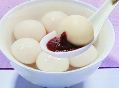 下汤圆也是有讲究的,用旺火将水烧开,然后将汤圆下锅,用勺背轻轻推开,让汤圆旋转几下,不会粘锅底;汤圆入锅煮至浮起后,要迅速改用小火,否则汤圆会不断翻滚,不仅容易破裂,而且会因为受热不均,使得外熟内生;汤圆入锅后,每开一次应该点入适量的冷水,使它保持似滚非滚的状态,开两三次后,再煮一会儿,即可捞出食用;汤圆煮过两三锅后,汤会变得浓稠,应该换水再煮,否则熟得慢,容易夹生。这其中最重要的诀窍是点两次冷水滚三滚。