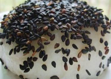 材料:山药一斤 无核红枣二两 糯米粉和黑芝麻适量