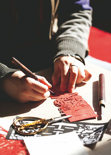 一张张精致典雅的红色中式剪纸,饱含着设计者的智慧与想象,手工制成的用心和独特,更充满了喜庆的味道。据说早在宋朝时期,按照中国的婚俗,新娘便会和她的女长辈一起动手剪制出礼花,贴放在妆奁上。而且在迎亲这天,新郎家会举行丰富多彩的仪式,张灯结彩,摆设酒席。而被邀请的至亲好友也会馈赠礼品,道喜庆贺,而这礼品上自然也少不了贴放剪纸礼花。房莹至今依然记得第一次接触剪纸艺术的情景,那优美的线条及独特的审美,使其至今难忘。而一系列的西方美学,也是让她不断吸收与借鉴的源泉,力求在自己的作品中寻找中西元素的完美结合。