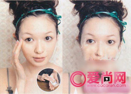 在眼睛下方的位置,使用含有珠光粉粒的散粉,目的是要让眼部更显通透。