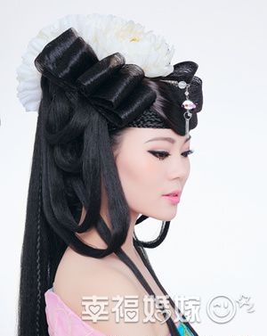 灵感来自古装电视剧里的角色,仙女一样的不食人间烟火,拥有美貌的同时又让人却而止步,气质型美女的最爱,每一小绺假发都充分体现层次的过渡,整个发型要饱满但不可繁琐,头发线条要流畅。