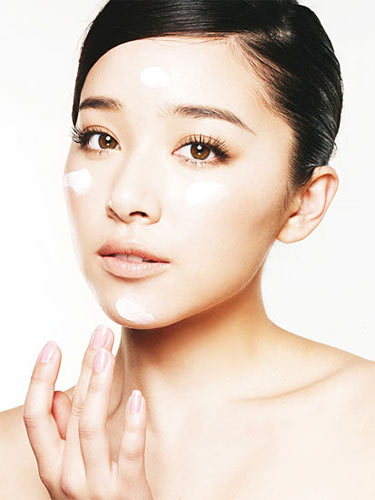 用隔离霜点在前额、双颊和下巴处,然后从鼻子向外涂匀,轻拍直到被完全吸收。乳液质地能增进皮肤的天然光泽,它是诱人的妆前乳。