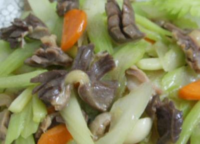 主料:西洋香芹1棵、鸡肫3个
