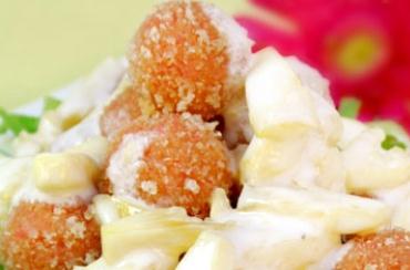 主料: 猪板油、核桃仁、鸡蛋清、菱粉、红绿丝