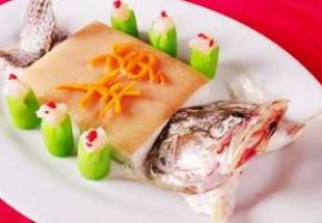 2)将鲫鱼宰杀治净,在鱼面两侧剞上花刀,下水锅分水洗净,抹上精盐和绍酒。用刀从羊肉侧面剖开,将鱼藏入。放入锅中,加清水、精盐、绍酒、葱姜、花椒,烧沸后移小火炖至羊肉酥烂,加入味精,淋芝麻油即成。
