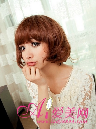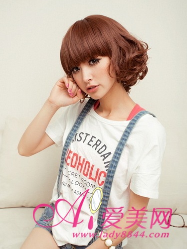 蓬松随意的刘海和中短发型的卷发弧度就可以打造出十分吸睛的可爱韩式卷发。