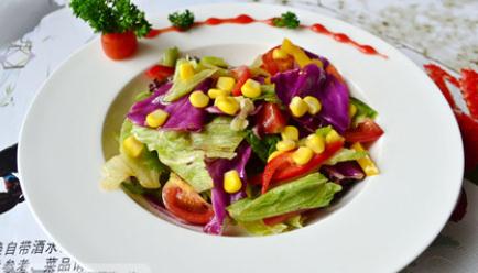 田园时蔬沙拉:蔬菜全部是每天精心挑选,确保最健康和最新鲜的口感,沙拉的做法保有营养价值不流失,味道更上一层。
