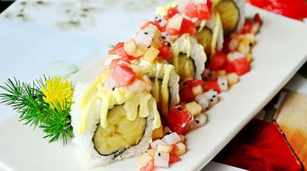 米奇寿司卷:精致的反卷寿司应时应景的点缀上缤纷的水果颗粒,再也不是赏心悦目那么简单,味道更是美不胜收。
