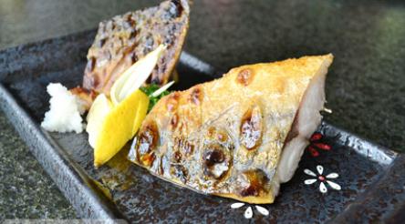盐烤挪威鲭花鱼:来自水城挪威的鲭花鱼不仅花纹清晰美观,而且肉质扎实细腻,用大火加盐烤炙,鱼皮和鱼肉各有千秋,风味十足。